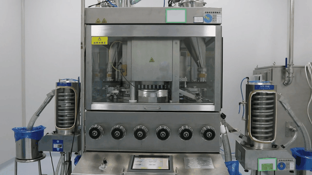 Capsule filling and tablet pressing: use advanced and high-speed equipment to press the mixed raw materials into tablets and fill capsules. Fully enclosed structure, automatic waste removal and automatic sampling inspection to ensure space purification.