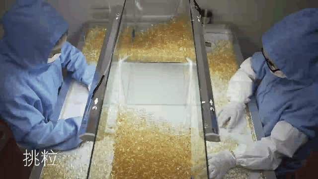 Pick the pellets: pick and remove the capsules with uneven shape. The essence is detected by artificial lamp and the dross is removed to extract qualified products.